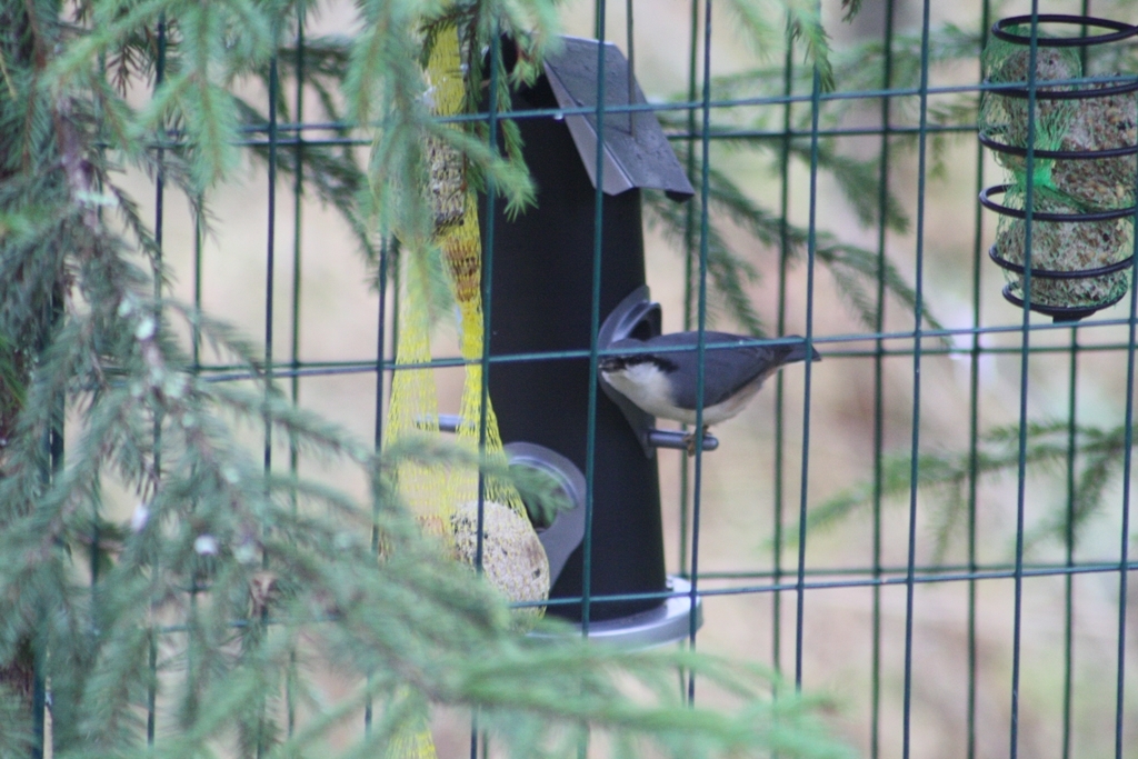 I have been feeding the local birds for a while now. Highest count so far, at the bird feeders, is four great tits, four blue tits, four robins (!!) (only once), two coal tits, seven long-tailed tits, two nuthatches, two blackbirds (m&f). Also in the garden are pigeons, magpies, an occasional jay, and a pair of crows, but they don't really go for the feeders. And there is a wol, which I have not seen but have often heard.